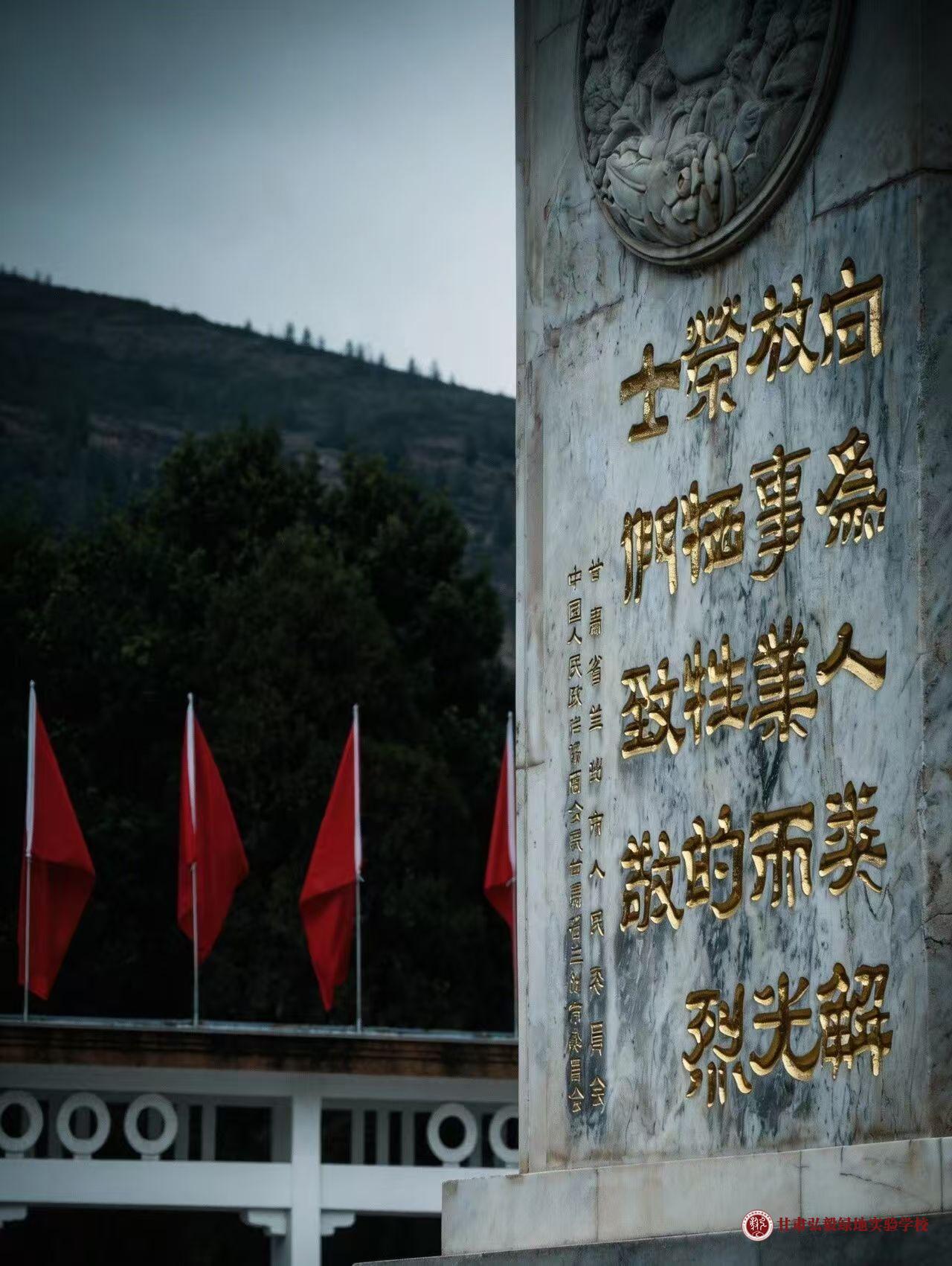9点30分,大巴车抵达兰州华林山烈士陵园。陵园内松柏苍翠挺拔,烈士纪念碑巍然矗立,“人民英雄永垂不朽”的鎏金大字在晨光中熠熠生辉,庄严肃穆的氛围笼罩全场。全体师生列队进入陵园,原地静候。